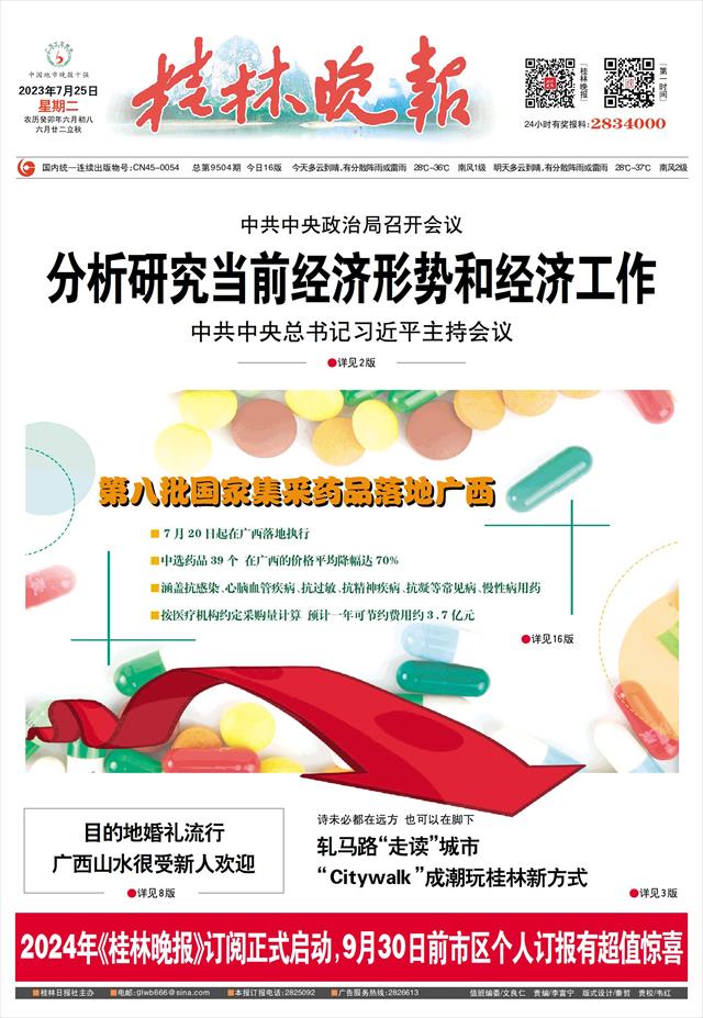 7月23日,记者从自治区医保局获悉,第八批国家组织集中采购药品中选结果于20日起在广西落地执行。本次国家集采中选药品39个,在广西的价格平均降幅达70%,全区共有1230家医疗机构参与报量,按医疗机构约定采购量计算,预计一年可节约费用约3.7亿元。