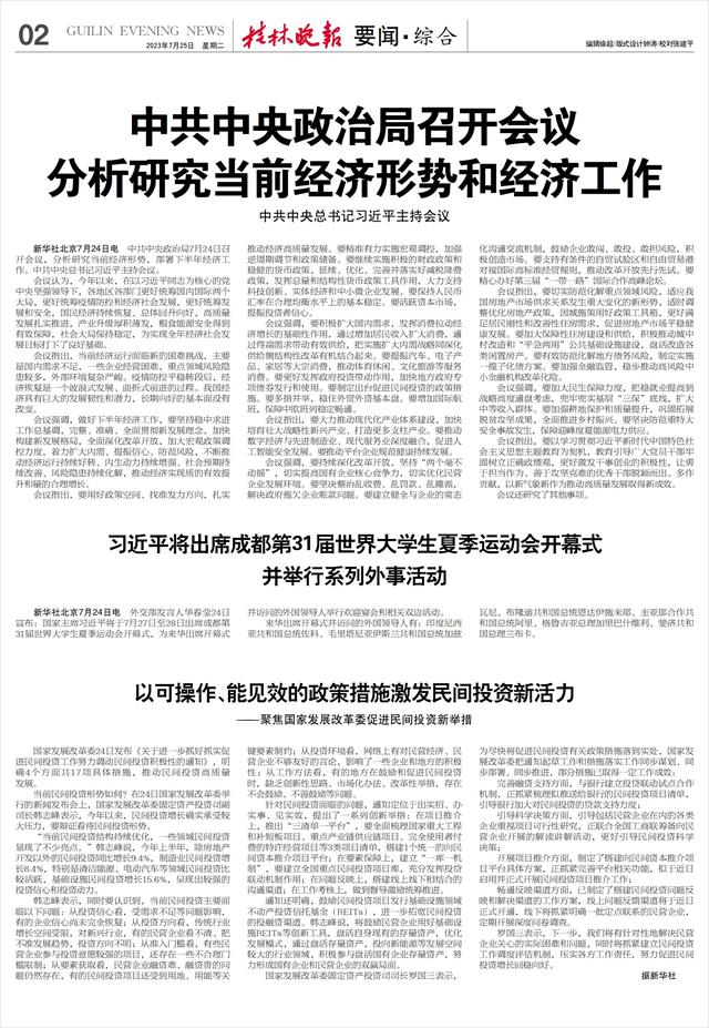 新华社北京7月24日电 中共中央政治局7月24日召开会议,分析研究当前经济形势,部署下半年经济工作。中共中央总书记习近平主持会议。