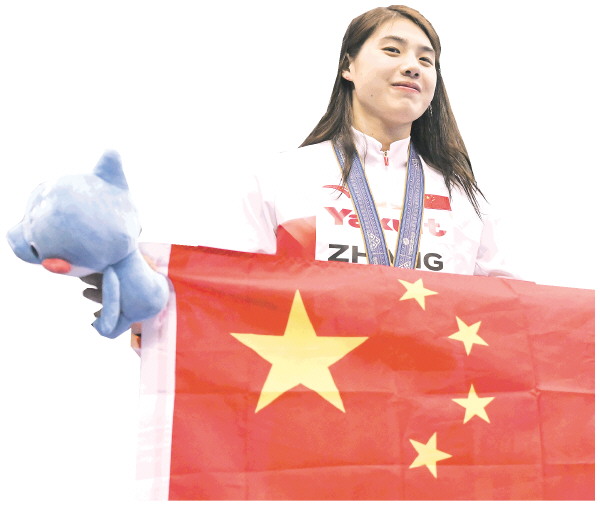 在女子100米蝶泳决赛中,中国“蝶后”张雨霏力压众多名将夺冠,摘得个人世锦赛首枚金牌。