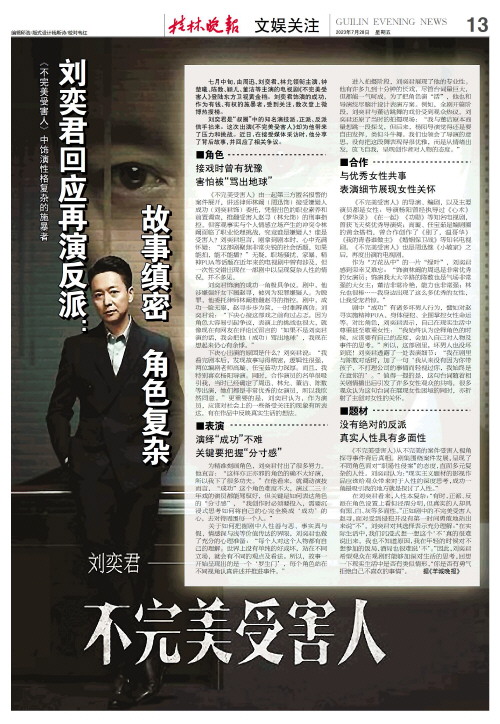 《不完美受害人》由一起第三方匿名报警的案件展开,讲述律师林阚(周迅饰)接受嫌疑人成功(刘奕君饰)委托,凭借出色的职业素养和前置调查,推翻受害人赵寻(林允饰)的刑事指控。但客观事实与个人情感立场产生的冲突令林阚面临了职业伦理挑战,究竟谁是嫌疑人?谁是受害人?刘奕君坦言,刚拿到剧本时,心中充满怀疑:“这部剧聚焦非常尖锐的社会话题,如果能拍,能不能播?”无疑,职场骚扰、家暴、精神PUA等话题在近年来的电视剧中曾有涉及,但一次性交错出现在一部剧中以呈现复杂人性的情况,并不多见。