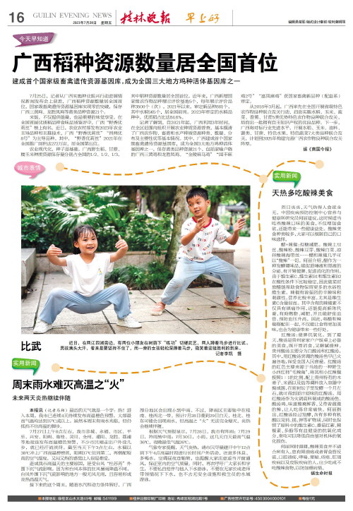 7月25日,记者从广西实施种业振兴行动进展情况新闻发布会上获悉,广西稻种资源数量居全国首位,国家级畜禽遗传资源基因库实现零的突破,保存广西三黄鸡、龙胜凤鸡等禽类品种资源21个。