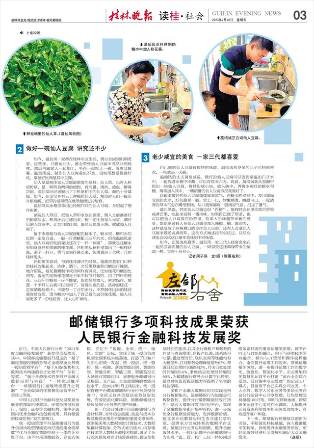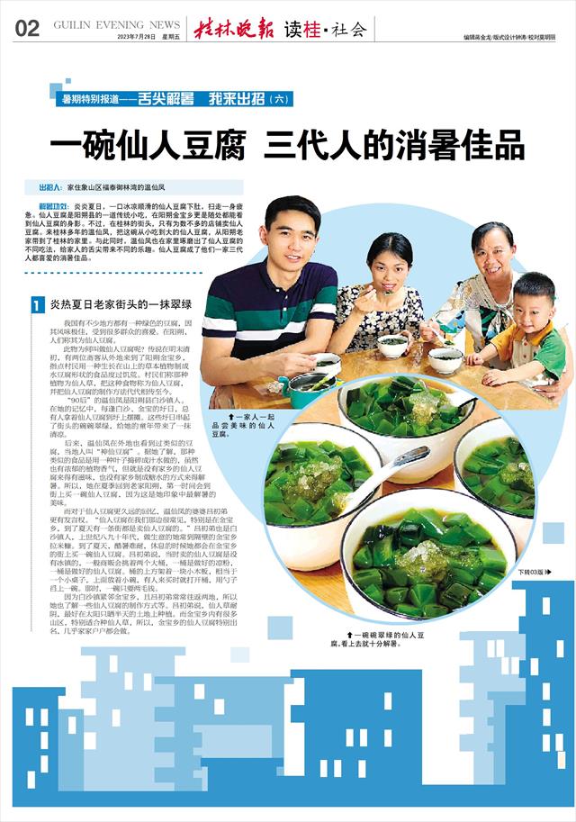 如今,正值炎热夏季,温仙凤一家三代人经常会坐在一起品尝着消暑的仙人豆腐,一同享受这抹翠绿带来的清凉一刻,笑得十分开心。