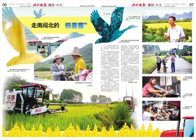 眼下正值桂林早稻收获时节,吸引了一群来自全国各地的“铁麦客”聚集。这些采用机械化收割方式的“铁麦客”,根据各地气候和农作物成熟时间,像候鸟一样走南闯北,已经把业务范围从收割小麦扩展到了收割水稻等。他们的到来,也成了桂林稻田里的一道特别风景。