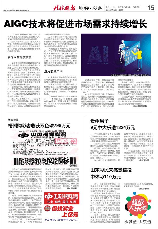 7月17日,体彩超级大乐透第23081期开奖。全国共开出13注一等奖,其中1注被贵州遵义的古先生(化姓)擒获,单票奖金1324万元!