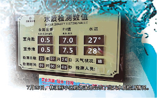 7月26日,林溪府小区的游泳池公示了当天水质检测情况。