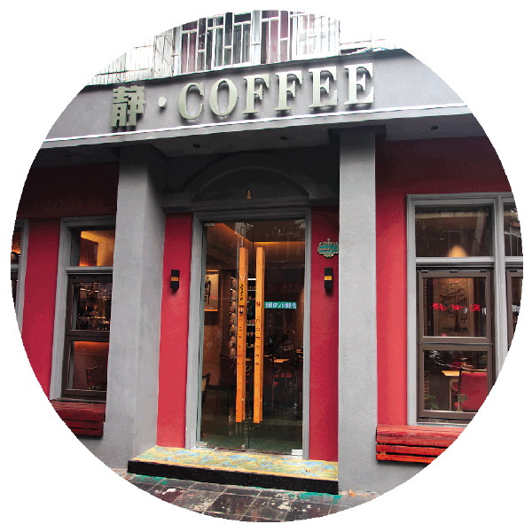 该门店的装修风格颇显时尚,以中国元素灰色和故宫红为主色调,显得精致优雅。夜晚时分,局部明亮的灯光映照在墙面,给人闹中取静的感觉,墙上4块大落地窗能把店内环境大致展现,路过的人们不时望向里面。