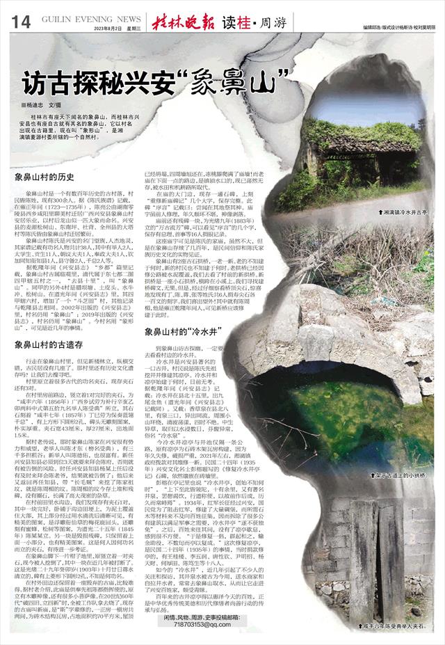 到象鼻山访古探幽,一定要去看看村边的冷水井。