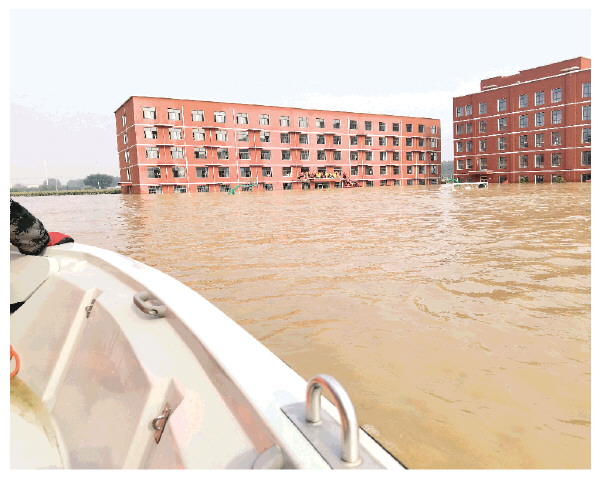 冲锋舟、橡皮艇靠近教学楼后,救援人员先给那些村民递上救生衣。村民也很团结,年轻力壮的村民协助救援人员将被困人员一一转移到冲锋舟、橡皮艇上。教学楼距离学校大门有两三百米的距离,救援人员驾驶冲锋舟、橡皮艇将他们转移到学校外,再将他们转移到大卡车、工程车上,由大卡车和工程车再将他们转移到安全区域。