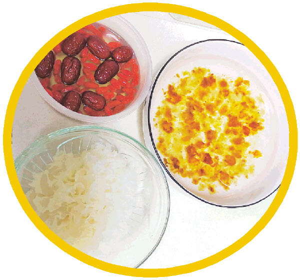 “冬天时,把桃胶炖一炖,等稍微冷却一点再喝,可以养胃。”秦梅英说,“夏天时,做法和吃法就更多了。”秦梅英说,桃胶最常搭配的是银耳,还可以跟薏米、桂圆等一起炖,然后冰镇,都是营养又美味的甜品。秦梅英选的桃胶都是野生的桃胶。她说,做桃胶时,至少要提前6小时泡发,从一小团发胀成一小盆。秦梅英泡发桃胶时会选用白瓷盆,方便看清楚桃胶里混杂的树皮等杂质。将杂质一点点挑拣出来,泡在水里的桃胶就成了小水母状。秦梅英说,银耳也要提前泡发,自己做银耳时,是要充分泡发后将底部黄色的“根”去掉。如果追求养生,秦梅英会选择加入红枣和枸杞,再加入适量冰糖,一起倒进高压锅里闷煮30分钟就可以了。