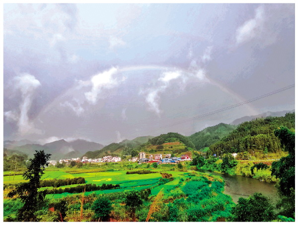 10日傍晚,龙胜各族自治县乐江镇在一阵降雨后出现了大自然美丽的景象——彩虹,引得不少市民纷纷驻足欣赏、拍照,留住美好瞬间。记者滕嘉 摄