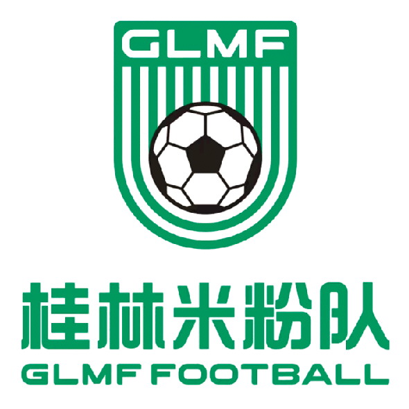 队标的作者来自重庆,名叫夏真艳,她设计的作品以绿色为主色调,代表着绿茵场,同时体现桂林自然生态环境优美,寓意球队健康良好发展。整个图形较为简洁,顶部为GLMF(桂林米粉)拼音手写字母,下方有一个足球,周围环绕的11根绿色弧形线条代表米粉形态,也象征着足球场上的11名球员团结一致,热爱足球运动。