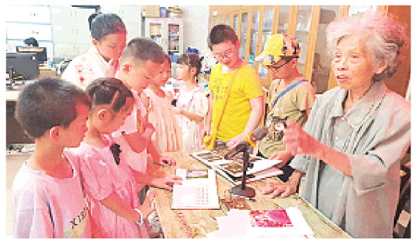 叶滨与青少年分享清廉家风、家训故事。(宝积社区供图)