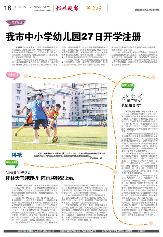 本报讯(记者唐霁云)昨日,记者从桂林市教育局获悉,2023-2024学年度秋季学期即将开启,全市中小学幼儿园将在8月27日开学注册,8月28日正式上课。各校领导、行政人员8月25日开始正常上班,教师8月26日正常上班。