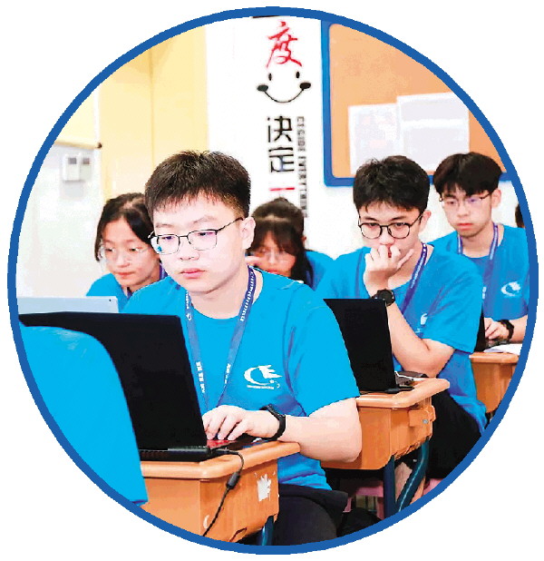 李昌佶(前一)在本届全国学生信息素养提升实践活动现场。(受访者供图)