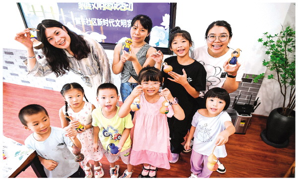 22日上午,在中国传统节日七夕节当天,秀峰区解东社区党群服务中心举办“乞巧画葫芦 浪漫度佳节”主题活动,居民们在葫芦上作画,共度七夕节。记者滕嘉 摄