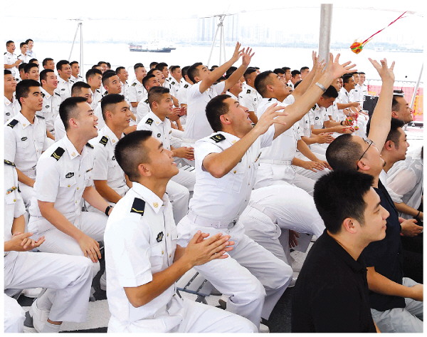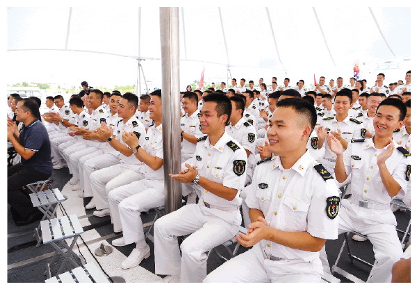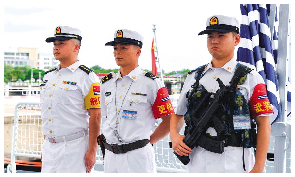 威武的战舰、严整的军容、饱满的士气,这就是新一代的海军桂林舰。