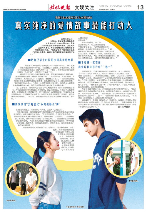 由刘雨霖执导,刘浩存、宋威龙等主演的电影《念念相忘》正在全国公映。导演刘雨霖在接受记者专访时表示,真实是自己创作的基石,而校园爱情的美好恰恰来自于它的克制和纯净,“我希望借这个故事来呈现我们所有人的青春,真实纯净的青春爱情故事最能打动人。”