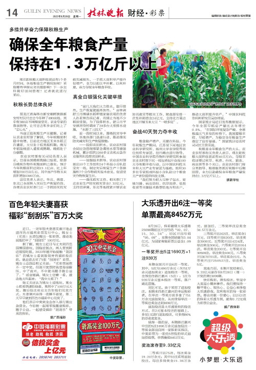 保持在1.3万亿斤以上   现在距秋粮大面积收获还有1个多月时间,各地粮食生产情况如何?采取哪些举措应对汛情影响?下一步怎样做好田间管理?记者就此进行采访。