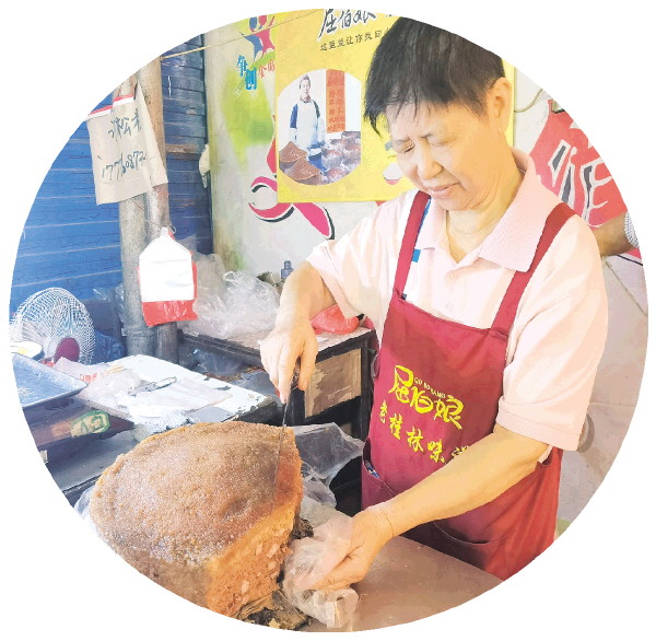 老板娘周玉珍正在为客人切松糕。