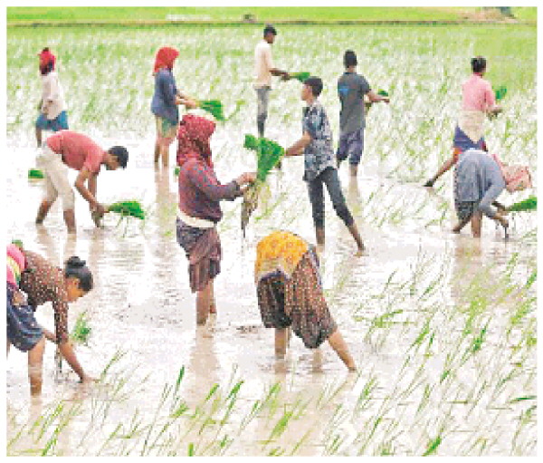 7月21日,在印度艾哈迈达巴德,农民在稻田里劳作。 新华社/路透