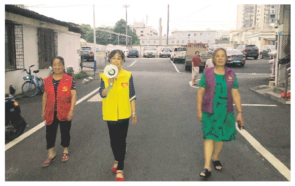 马卫红(中)和志愿者一起巡逻。(铁路社区供图)