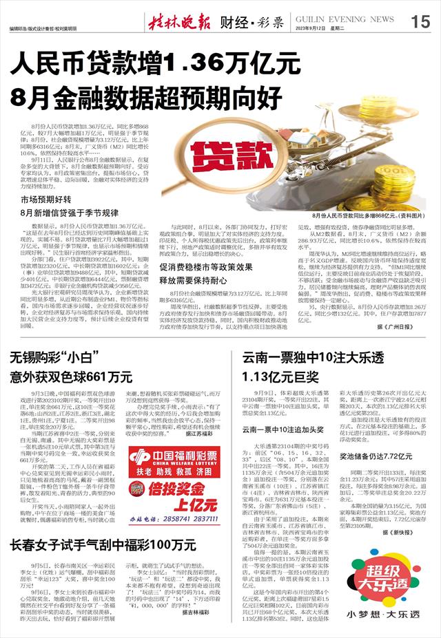 8月金融数据超预期向好   8月份人民币贷款增加1.36万亿元,同比多增868亿元,较7月大幅增加超1万亿元,明显强于季节规律;8月份,社会融资规模增量为3.12万亿元,比上年同期多6316亿元;8月末,广义货币(M2)同比增长10.6%,依然保持在较高水平……