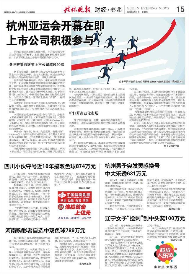 上市公司积极参与   第19届亚运会即将在杭州开幕。作为备受海内外关注的国际体育赛事,本届亚运会赛事规模将创新高,众多不同行业的上市公司积极投身参与其中。