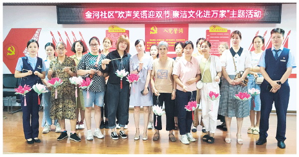 9月27日上午,金河社区在活动室举办了“欢声笑语迎双节 廉洁文化进万家”主题活动,一共有22位居民参加。