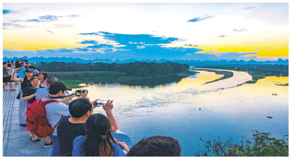 近日傍晚时分,龙门大桥上聚集了很多慕名前来拍摄晚霞的市民和游客。站在龙门大桥上,远山如黛,近水含烟,霞光映红了水面,真是如诗如画,美极了。 记者李凯 摄