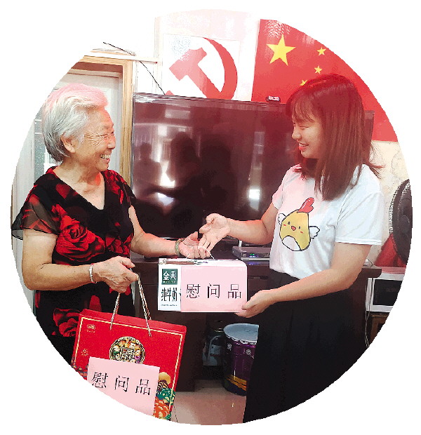 →宝积社区的工作人员走访慰问社区党员。