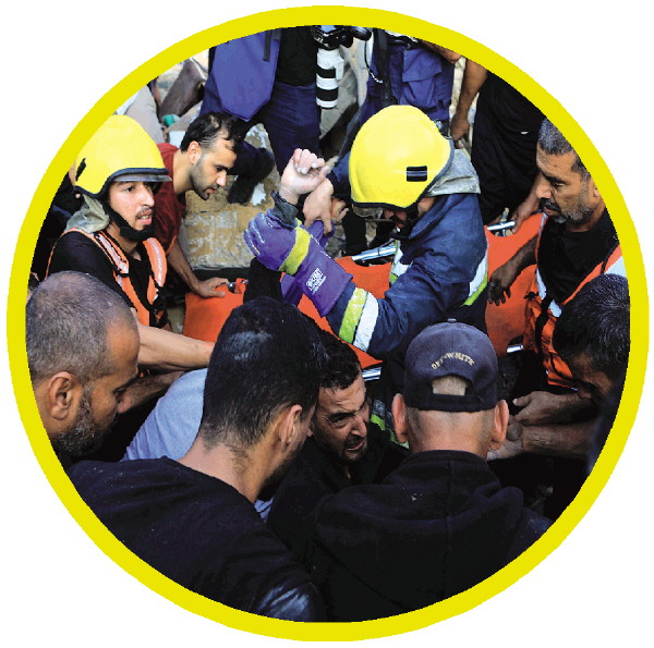 16日,人们在遭以色列袭击后的建筑废墟中救援伤者。新华社发