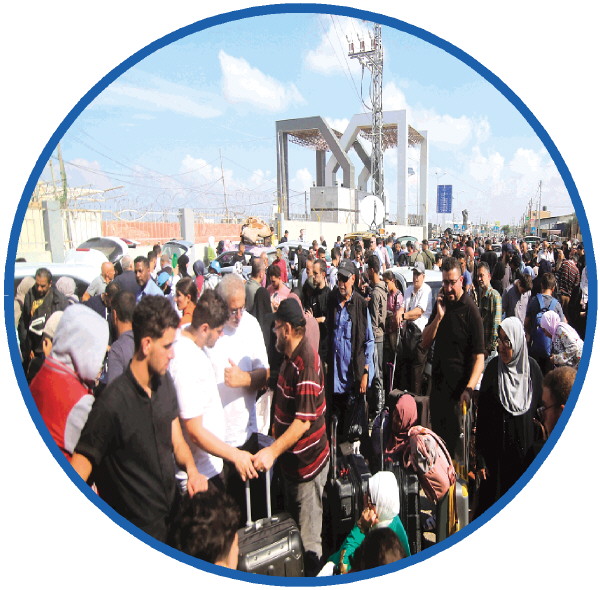 在加沙地带南部的拉法口岸前等待撤离的人们。 新华社发