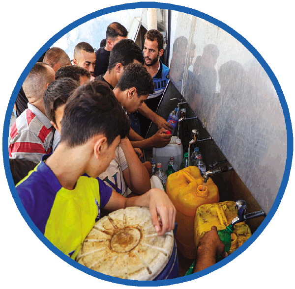 18日,在加沙地带南部城市汗尤尼斯,人们接取生活用水。 新华社发