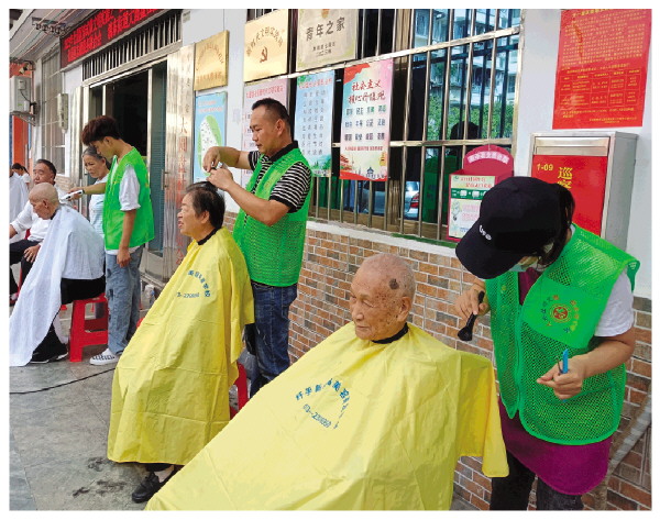 大圆盘社区组织志愿者为老人提供温馨服务。记者韦彦青 摄
