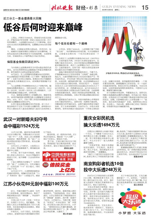 近三分之一基金遭遇最大回撤 低谷后何时迎来巅峰   上周五,沪指失守3000点,再度成为市场关注焦点。沪指自2007年年初第一次站上3000点以来,在17年的周期中,上证指数在3000点上下不断穿梭,经历过6124点的历史最辉煌时刻,也遭遇过1664点的至暗时刻。