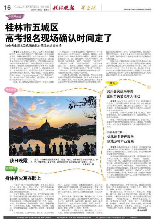 高考报名现场确认时间定了 社会考生报名及现场确认时需注意这些事项   本报讯(记者唐霁云)昨日,记者从市招生考试院获悉,2024年高考报名已于日前启动。除了在校的应届生,桂林市原住居民(身份证4503开头且为桂林市户籍)在外地学校就读的高中应届毕业生、满足报考条件的桂林市户籍往届考生、已在桂林市参加过2023年高考统考的考生、参加退役军人高职单独招生的考生、参加高职院校面向其他社会群体人员(包括下岗失业人员、农民工、企业员工、灵活就业人员等)学历提升的考生,可以作为社会考生在桂林市参加2024年普通高考报名。考生可通过广西招生考试院网站(https://www.gxeea.cn/)的“考试报名”中“2024年高考网上报名系统”进行报名,报名截止时间为2023年10月31日17:30。