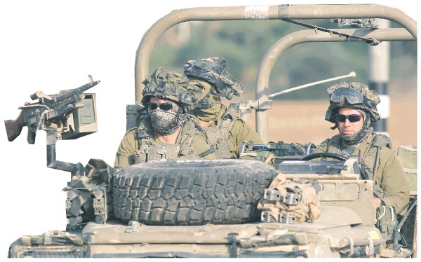 28日,以军车辆在加沙边境以色列一侧巡逻。 新华社发