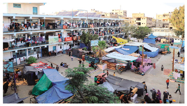 ←加沙地带南部城市汗尤尼斯一处临时难民营地。