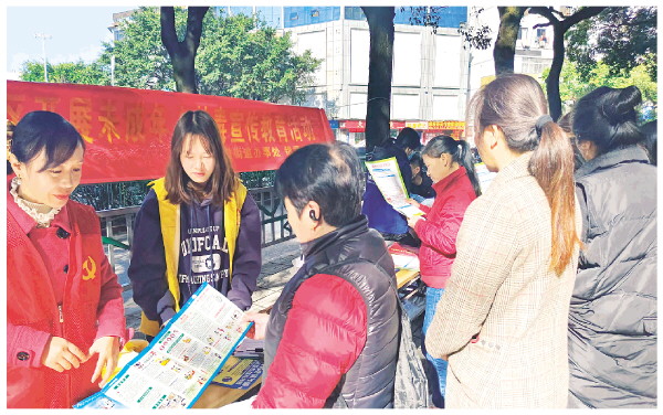 ↑锦绣社区组织党员志愿者进小区开展禁毒宣传。(锦绣社区供图)