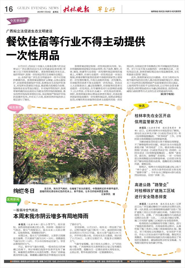 广西拟立法促进生态文明建设 餐饮住宿等行业不得主动提供