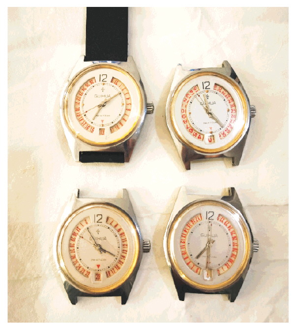 黄健平还利用出差的机会,在广西各地的旧货市场、供销社、修表摊位搜寻喜欢的物品。1990年的一天,他出差到贺州信都,在一个供销社里发现了3块款式极为稀有的日历“转盘”款“桂花牌”手表,标价36元。他当即满心欢喜就要全部拿下,但与他同行的两个同事也想要,于是一人买了一块。同样的日历“转盘”款“桂花牌”,他后来又陆续收集到了3块。