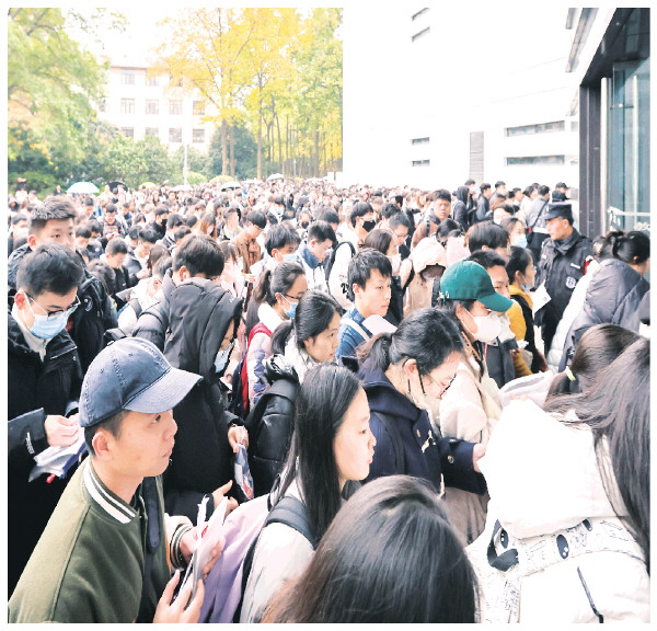 11月26日,在南京林业大学考点,考生进场准备参加考试。当日,中央机关及其直属机构2024年度考试录用公务员公共科目笔试在全国各考区统一举行。 新华社发