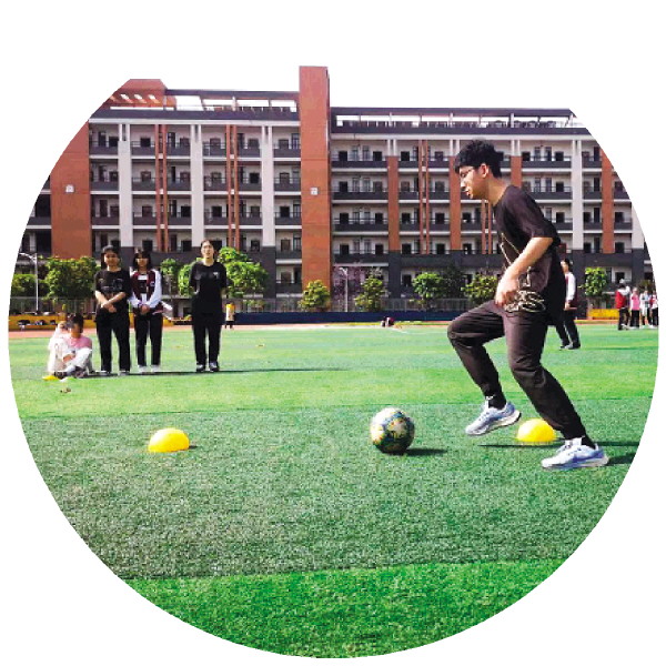 邹聊文说,该校一学期的体育课程大致分为上、下两个阶段,第一个阶段主要进行体能方面的锻炼,第二个阶段则是让学生根据个人兴趣爱好从足球、篮球、排球、健美操等项目进行分班。
