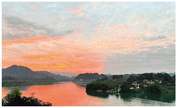 从桃花岛的岸边眺望长滩村,能看到依山傍水的民居,感受特色建筑融入山水的结构之美;从长滩村看向桃花岛,视野开阔,江水环抱,晚霞给桃花岛披上了时粉时红的薄纱,让人看了如痴如醉。