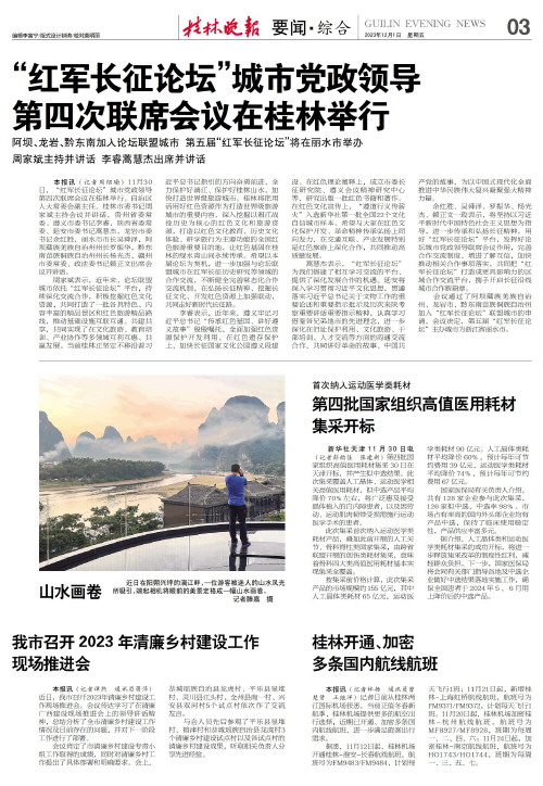 本报讯(记者周绍瑜)11月30日,“红军长征论坛”城市党政领导第四次联席会议在桂林举行。自治区人大常委会副主任、桂林市委书记周家斌主持会议并讲话,贵州省委常委、遵义市委书记李睿,陕西省委常委、延安市委书记蒿慧杰,龙岩市委书记余红胜,丽水市市长吴舜泽,阿坝藏族羌族自治州州长罗振华,黔东南苗族侗族自治州州长杨光杰,赣州市委常委、政法委书记赖正文出席会议并讲话。