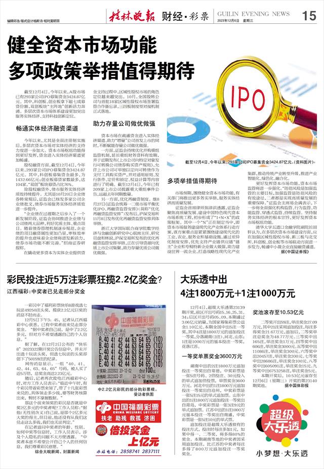 市场预期,围绕健全资本市场功能,有关部门将推出更多务实举措,服务实体经济高质量发展。