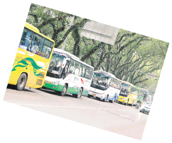 滨江路上停满了旅游大巴。