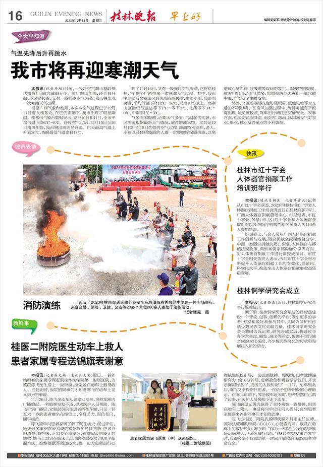 培训班举行   本报讯(通讯员韩沫 记者唐霁云)记者从市红十字会获悉,2023年桂林市红十字会人体器官捐献工作培训班近日在桂林宾馆举行,广西人体器官捐献管理中心、市卫健委、市红十字会、各县(市、区)红十字会和人体器官获取组织以及各医疗机构的相关负责人等110余人参加培训。