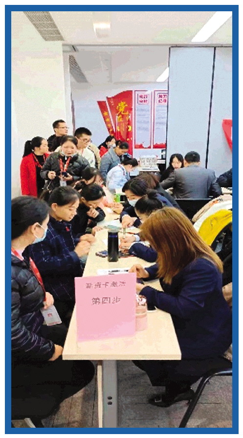 浦发银行桂林分行营业部工作人员为客户办理薪资卡激活。