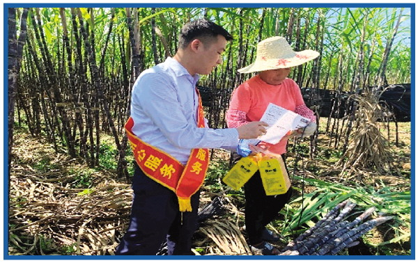 浦发银行桂林分行工作人员走到田间地头,为村民发放金融知识宣传折页。